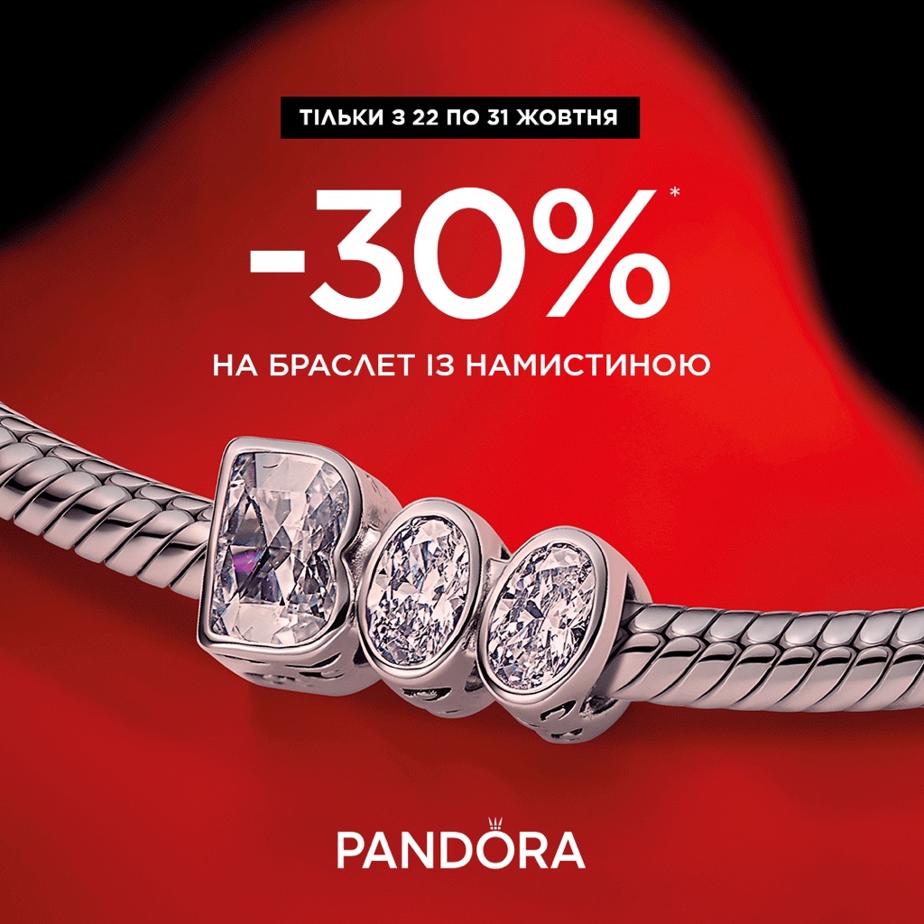 ДОКЛАДНІШЕОсоблива пропозиція від Pandora 🥰 Тільки з 23 по 27 жовтня включно отримуйте знижку 20% при покупці двох прикрас та більше. Порадуйте подарунками себе та рідних ❤️ *Деталі пропозиції дізнавайтесь у консультантів фірмового магазину Pandora у нашому ТРЦ.