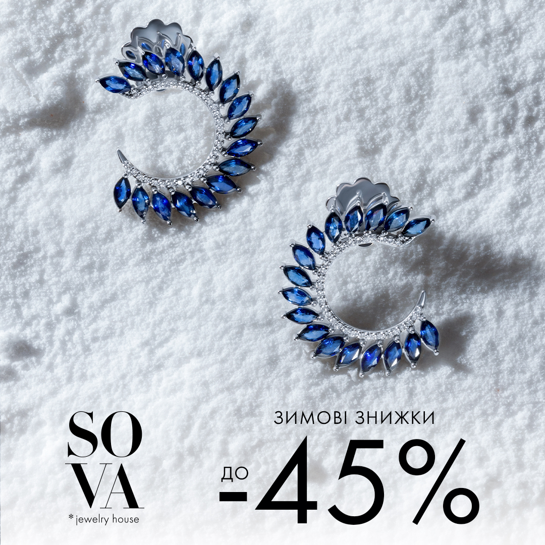 Зимові знижки до -45% від SOVA ❄️ До -50% на сяючі прикраси з діамантами. Спеціальна пропозиція на кераміку — до -50%. Акція триває по 5 січня включно. Детальніше про умови акції дізнавайтесь у бутику SOVA»
