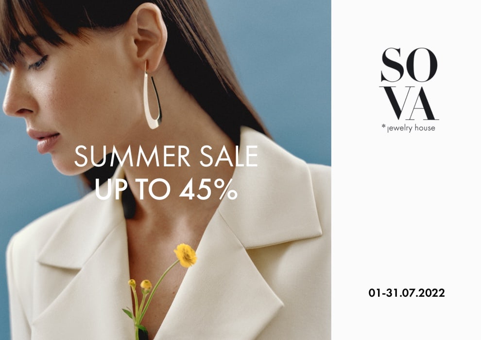 ДОКЛАДНІШЕSUMMER SALE up to 45%! З 1 по 31 липня діють знижки: -45% на прикраси із спеціального розділу -20% + 5%* на прикраси з основного каталогу *5% — додаткова знижка для нових і вже існуючих власників дисконтних карт SOVA Club Знижки для військових: -10% на обручки Classic -5% додаткова знижка на прикраси з основного