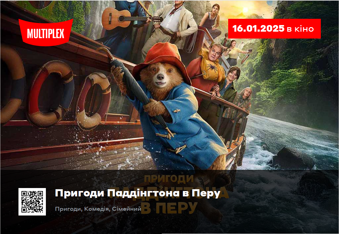 Скануйте код на афіші та дізнавайтесь більш детальну інформацію про розклад сеансів, вартість квитка та строк прокату кінострічки.