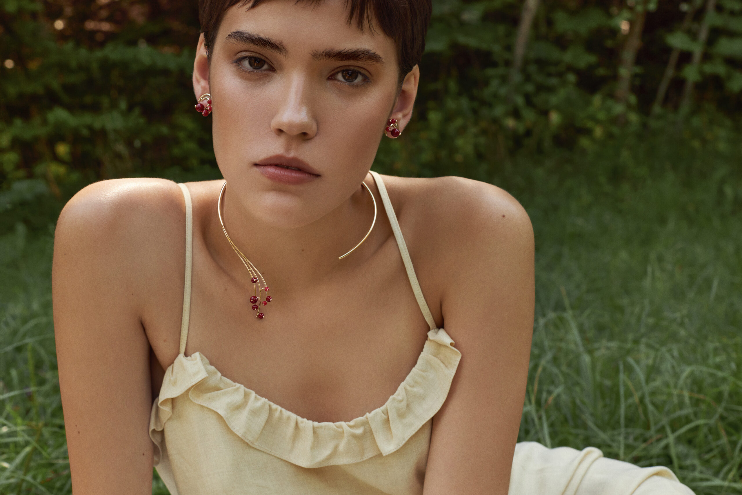 SOVA надає символу нового, сучасного звучання. Коралові ягоди спускаються в незвичні грона прикрас, неначе завиток калинової лози.
