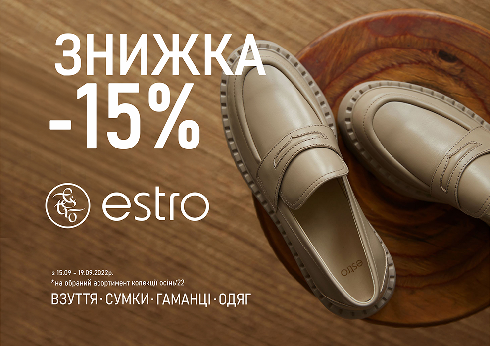 *Акція діє 15.09 — 19.09.2022 на обраний асортимент у роздрібній мережі та в інтернет-магазині estro.ua