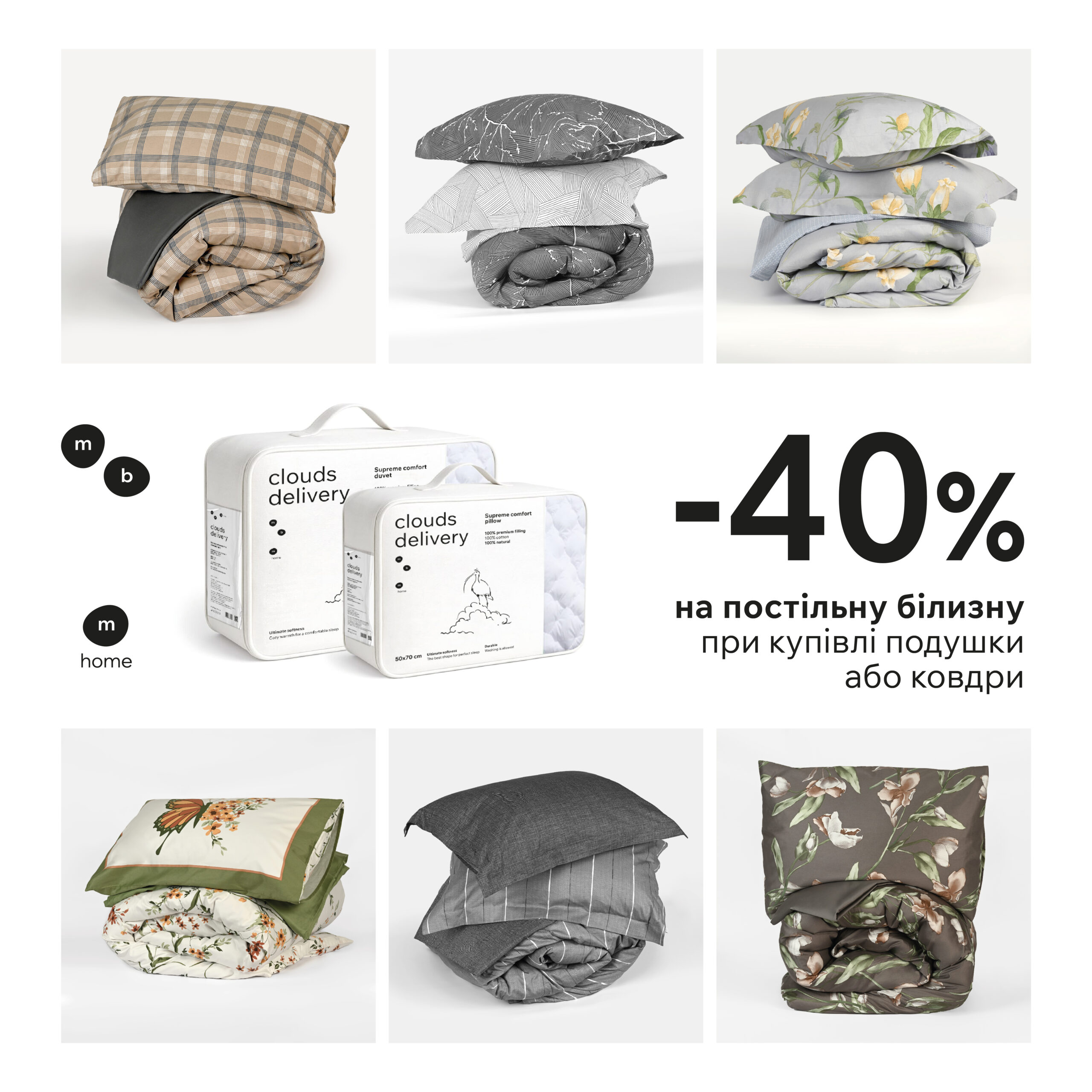 Купуй ніжну пухову подушку або ковдру – та отримай -40% на будь-який комплект бавовняної постільної білизни. Якісні матеріали в тандемі з витонченим дизайном створюють ідеальне поєднання комфорту та стилю.
