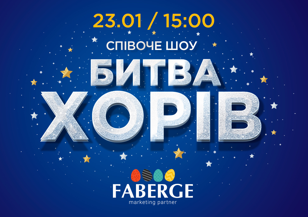 Запрошуємо долучитись до масштабного співочого шоу «БИТВА ХОРІВ». Феєричний пісенний марафон розпочнеться 23 січня о 15:00 на головній сцені ТРЦ «Екватор».