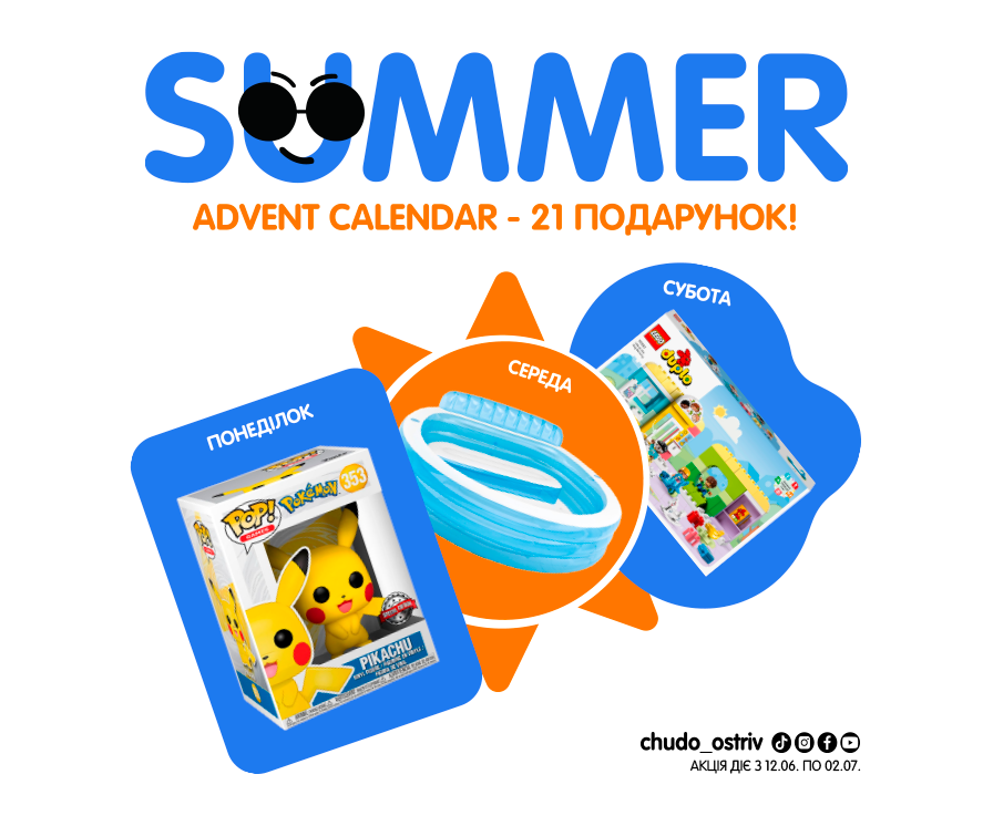 21 день — 21 шанс виграти крутий подарунок! З 12 червня по 2 липня купуй будь-які товари в магазинах Чудо Острів — офлайн або онлайн — та щодня бери участь у розіграші сюрпризів! Головне — бути учасником програми лояльності “Вау Бонус”. Розігруємо подарунки щодня! Чеки беруть участь автоматично, без зайвих дій. Імена переможців публікуватимемо в