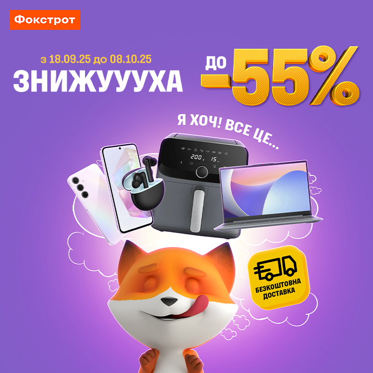 Що ХОЧ! 😍 у Фокстрот бери 🦊⤵️ Смартфон📱навушники 🎧 чи ноут для гри 💻 До -55% ЗНИЖУУУХА На гаджети, яких ти так хочуха🔥 🔥Діє кредит на 24 платежі 💸 Кешбек 5% при оплаті карткою mono, Пумб або ПриватБанк 🚚 Безкоштовна доставка З 18.09 до 08.10.25 🏄 ФОКСУЙ за улюбленим!