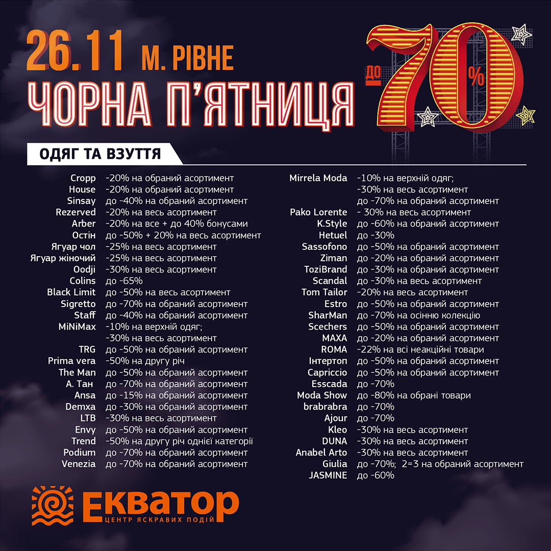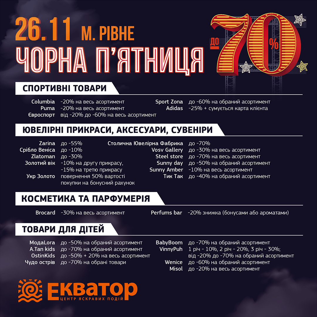 Запрошуємо тебе 26 листопада в ТРЦ «Екватор» на справжнє свято шопінгу!