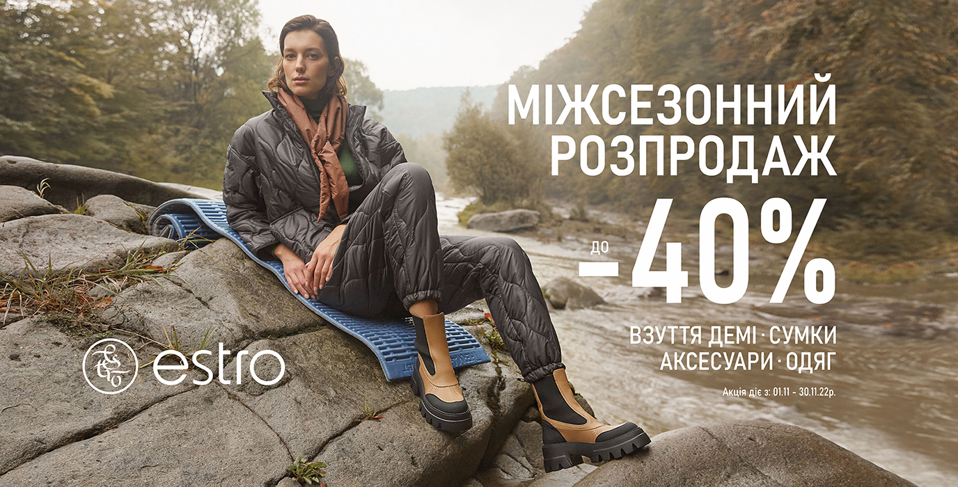 *Акція діє на колекцію осінь-зима`22 з до 30.11.22. Чекаємо у ESTRO в ТРЦ «Екватор» у м.Рівне