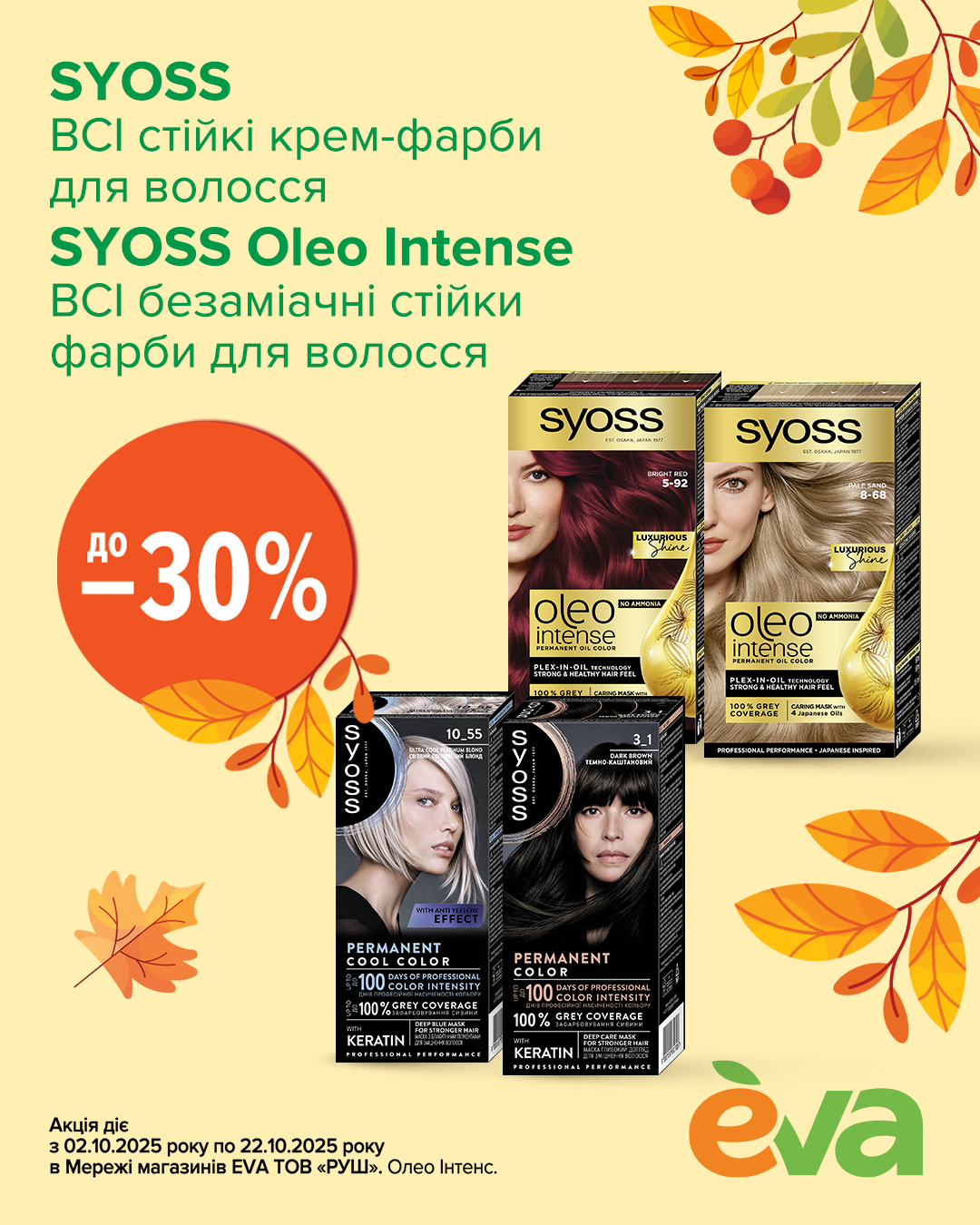 🧴до 30% на ВСІ засоби для миття волосся та фарби для волосся SYOSS