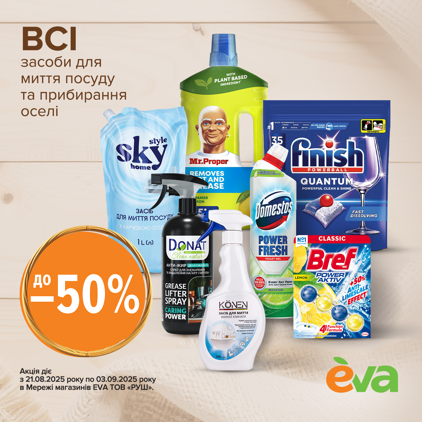 🧼до 50% на ВСІ засоби для миття посуду та прибирання оселі