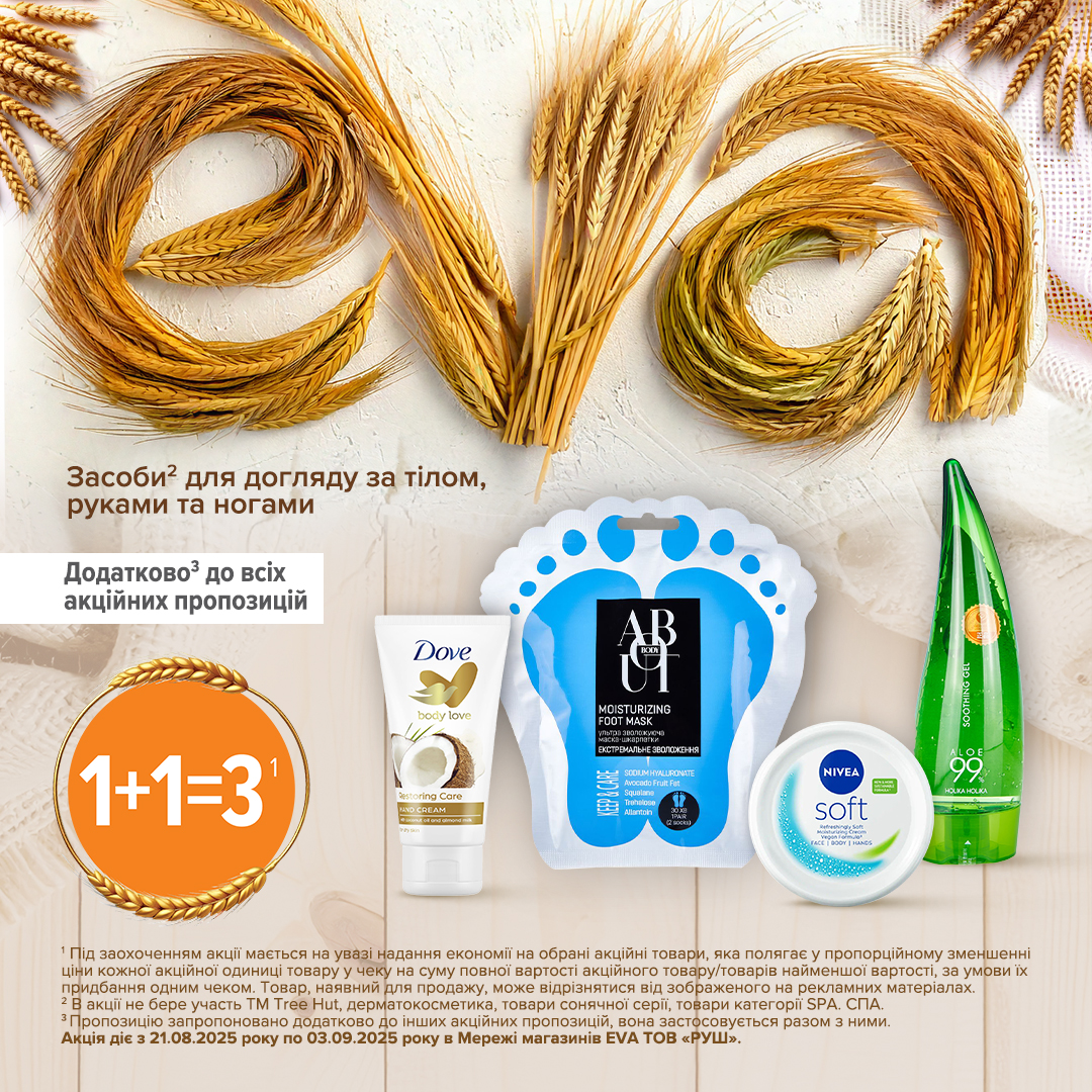 💫1+1=3 на засоби для догляду за тілом, руками та ногами.
