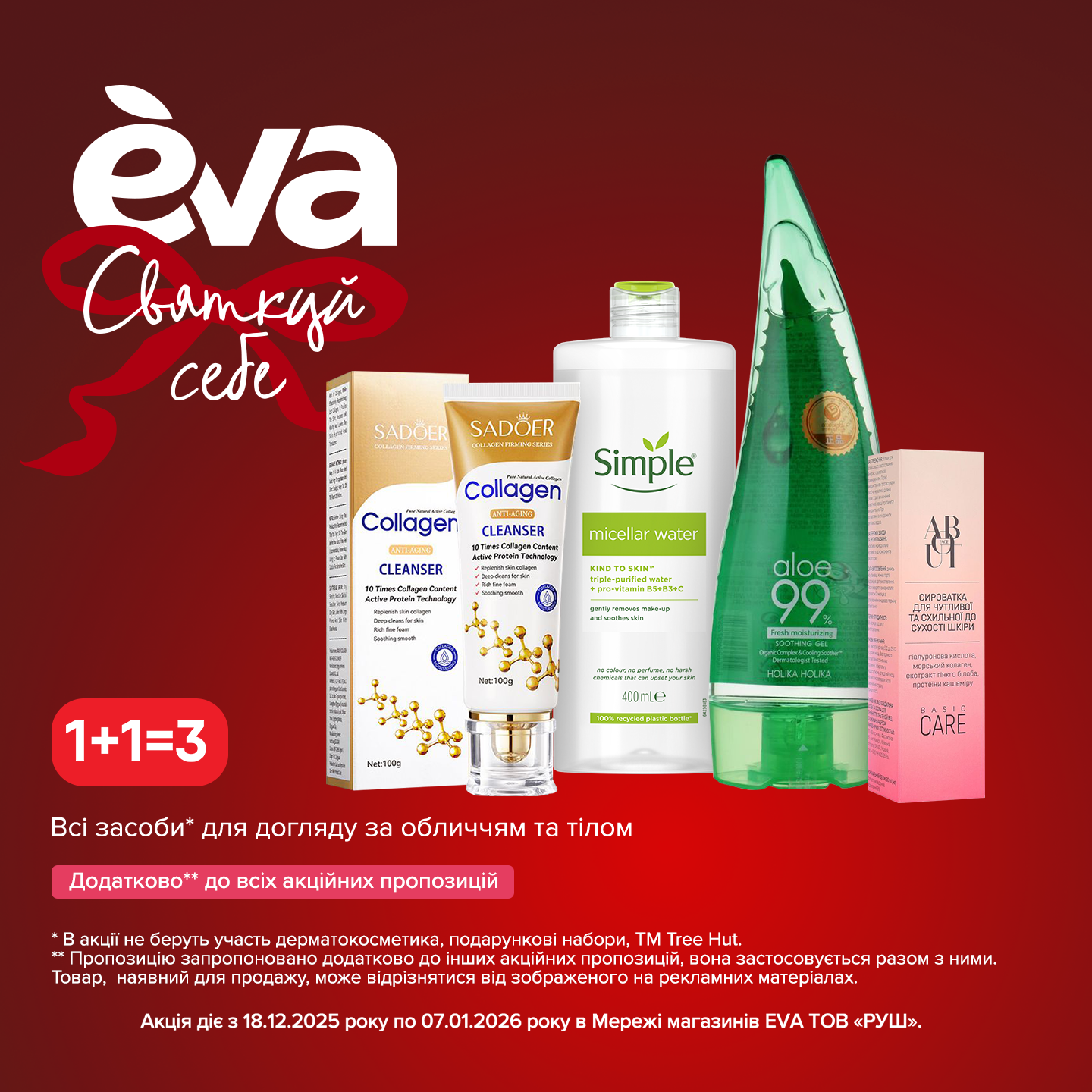 🧴1+1=3 на засоби для догляду за обличчям та тілом