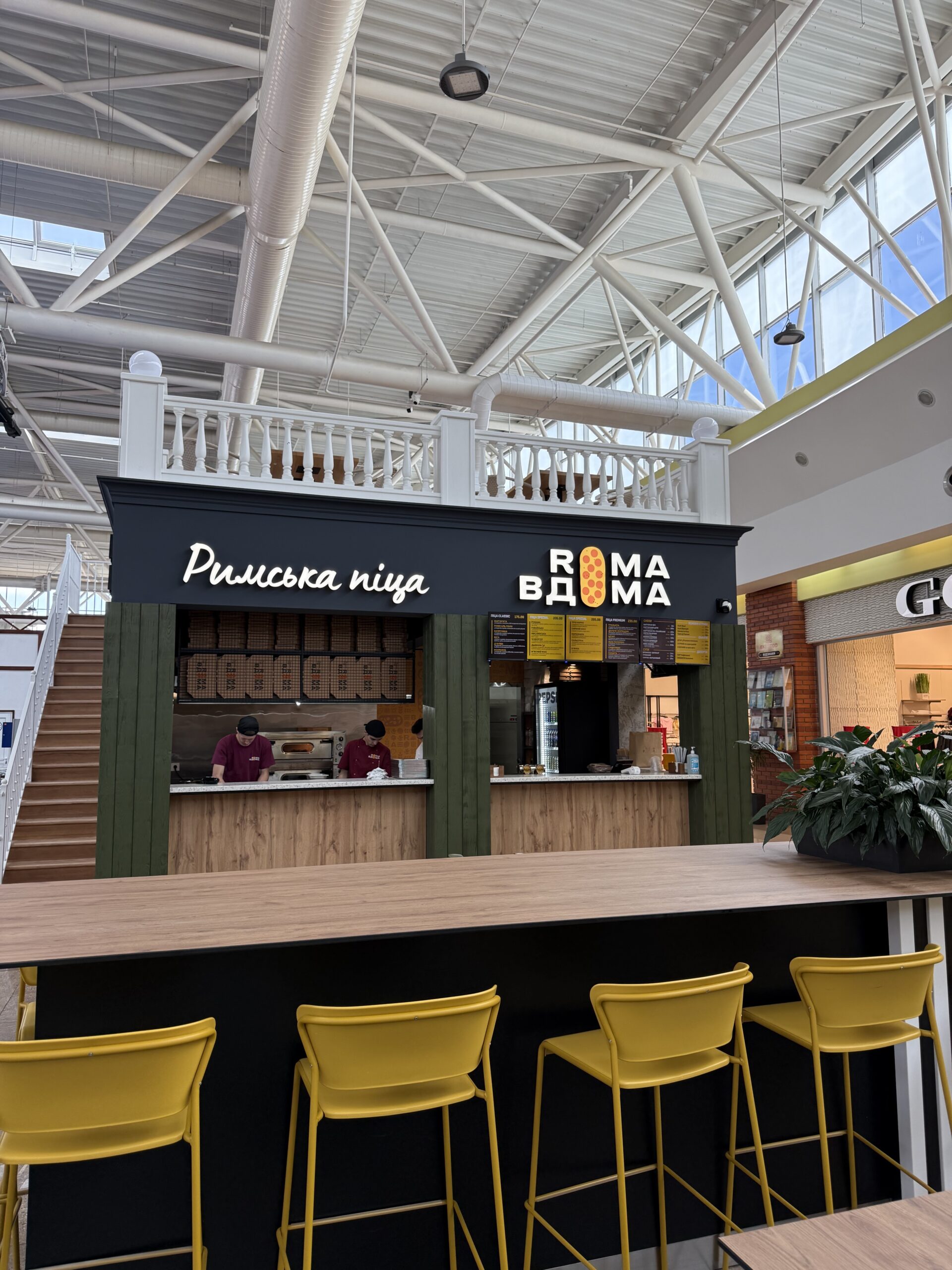 ROMA ВДОМА — це спосіб подарувати собі італійські емоції у закладі на фудкорті чи вдома з коробкою свіжоспеченої римської піци.