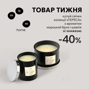 Обирай запашну ароматичну свічку «Тереса» з нотами морського бризу та шавлії зі знижкою 40%.