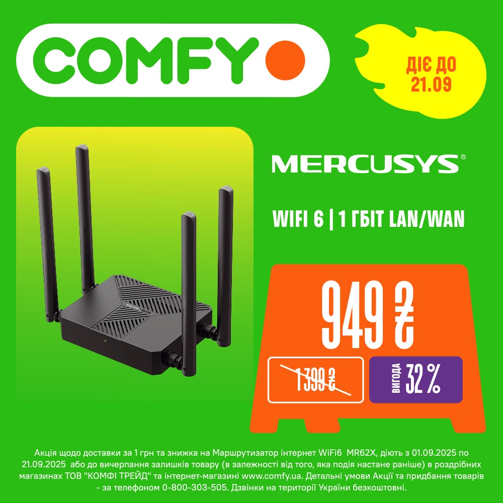 · Роутер Mercusys WIFI 6 | 1 ГБІТ LAN/WAN